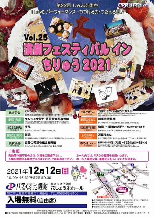 愛知県知立市が地元文化の継承と地域活性化を目的とした 「Vol.25 演劇フェスティバル イン ちりゅう2021」で 劇団希求様に当団体理事長 松室憲治の半生を題材とした演劇を披露していただきました。