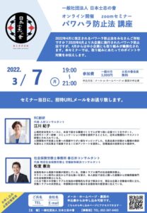 2022年2月9日パワハラ防止法講座をオンラインにて開催します。